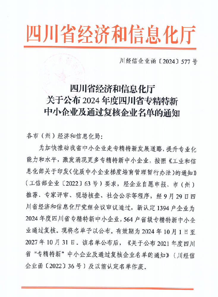 近日,四川省經(jīng)濟(jì)和信息化廳公布了2024年專精特新中小企業(yè)名單,四川艾能捷科技有限公司(Sichuan Energy Technology Co., Ltd.)憑借其卓越的技術(shù)實(shí)力和專業(yè)化發(fā)展優(yōu)勢,榮獲四川省“專精特新”中小企業(yè)稱號。這一成就體現(xiàn)了艾能捷(ENERGY)公司在技術(shù)創(chuàng)新和專業(yè)服務(wù)方面的卓越表現(xiàn),也符合“... -